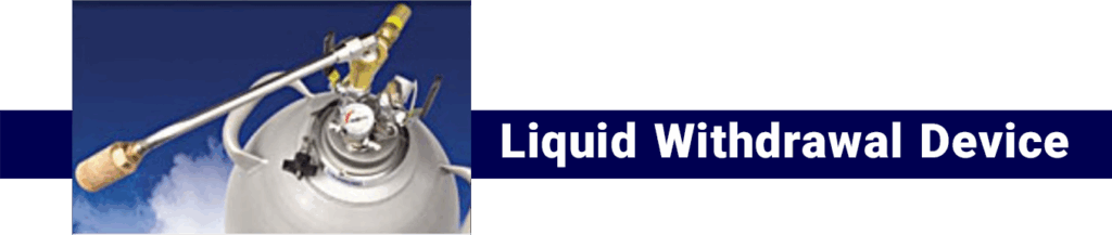 The liquid withdrawal device facilitates the extraction of liquid from the flask by applying the appropriate working pressure. This device is directly connected to the flask’s designated neck flange. The flow rate of this device is 8 liters per minute, with a working pressure of 0.5 bar (7.25 psig). This device is commonly used in cryotherapy by medical professionals.