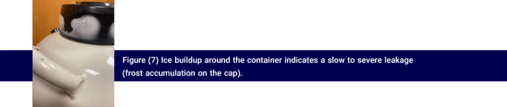 Although liquid flasks have the potential to last for many years with proper care, they will eventually fail due to the loss of vacuum and the reduction of the flask’s insulation. The evaporation rate of the flask should be regularly checked (Figures 8 and 7).
